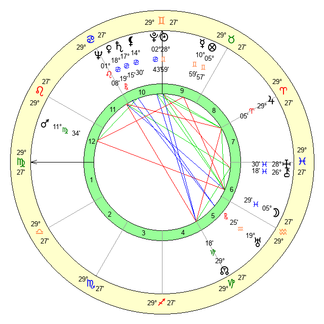 | Sun | 28 Gemini 59 | 29 Gemini 37 | 14 Libra 5 |