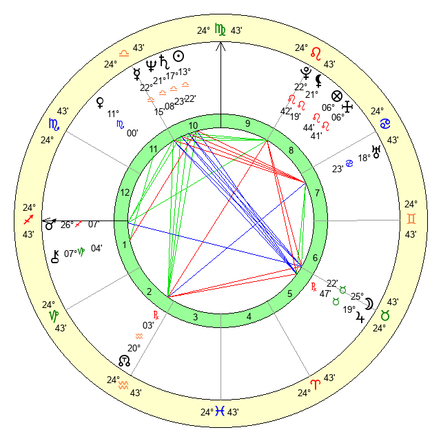 | Saturn | 17 Libra 52 | 27 Pisces 13 | 25 Libra 48 |