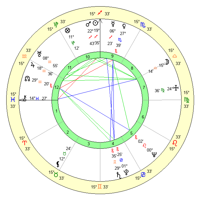 | Saturn | 0 Cancer 22 | 25 Pisces 15 | 27 Gemini 12 |