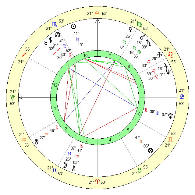 | Mars | 15 Virgo 16 | 0 Sagittarius 7 | 5 Scorpio 36 |
