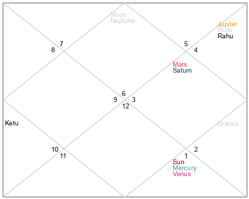 | Neptune | 4 Libra 15 | 27 Pisces 18 | 2 Libra 55 |