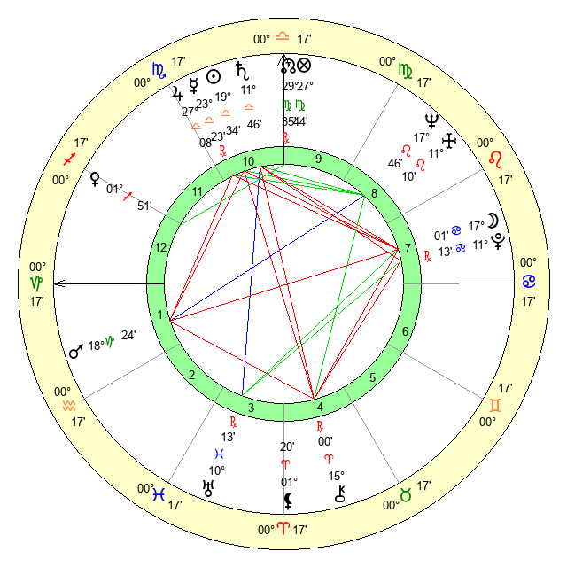 | Jupiter | 26 Libra 56 | 23 Cancer 49 | 16 Scorpio 18 |
