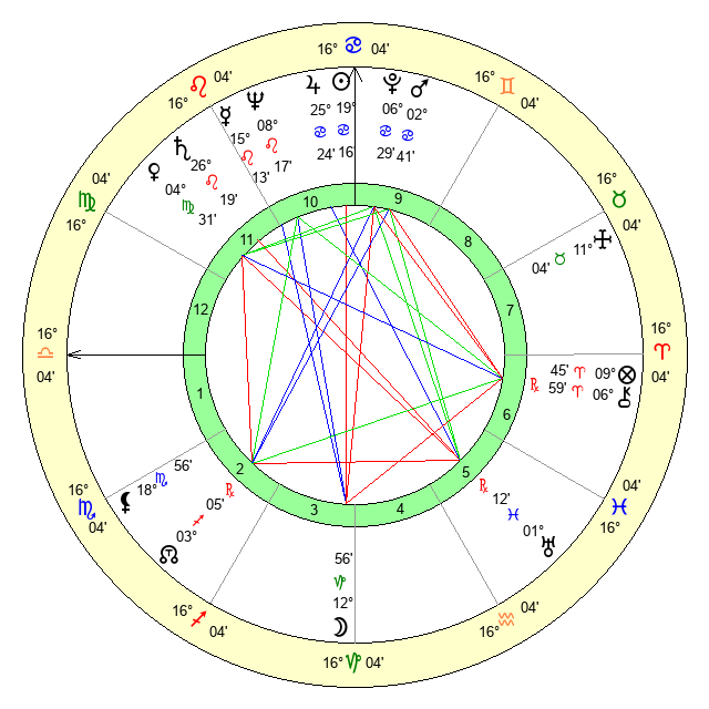| Mars | 2 Cancer 41 | 14 Virgo 38 | 9 Virgo 58 |