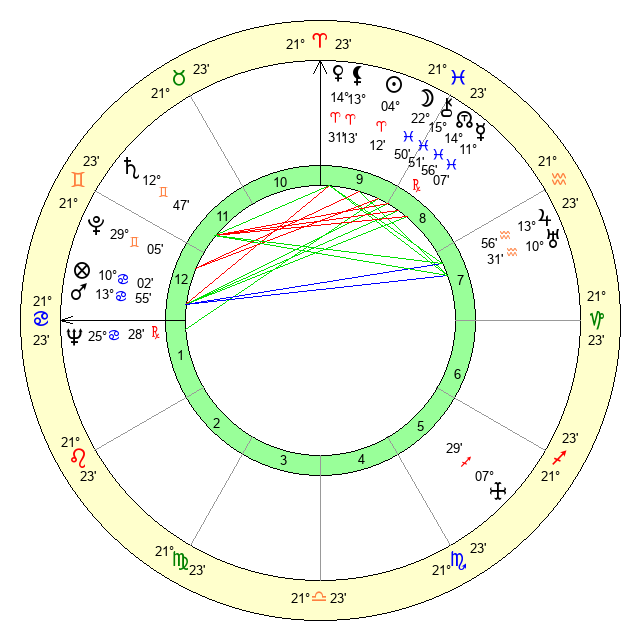 | Sun | 4 Aries 12 | 5 Aries 18 | 21 Cancer 22 |