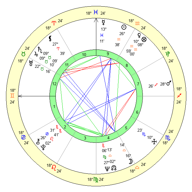 | Neptune | 27 Virgo 6 | 28 Pisces 25 | 25 Virgo 6 |