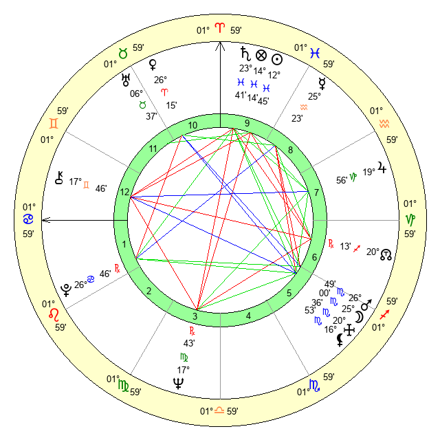 | Saturn | 23 Pisces 48 | 20 Pisces 57 | 3 Aries 25 |