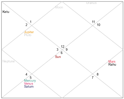 Note: This birth chart is calculated using the date and place of birth, with the time set to noon (12:00 PM) local time. While this provides accurate planetary positions for most celestial bodies, the Ascendant (Rising Sign) and house cusps are not calculated since they require precise birth time. For a complete astrological analysis including houses and rising sign, please provide the exact birth time.
