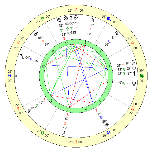| Neptune | 16 Virgo 46 | 29 Pisces 23 | 15 Virgo 4 |