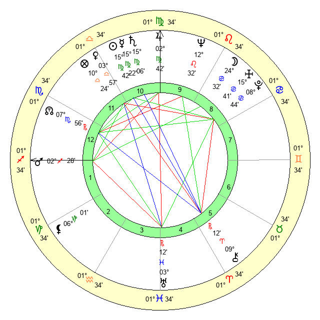 | Saturn | 15 Virgo 44 | 29 Pisces 21 | 25 Virgo 20 |