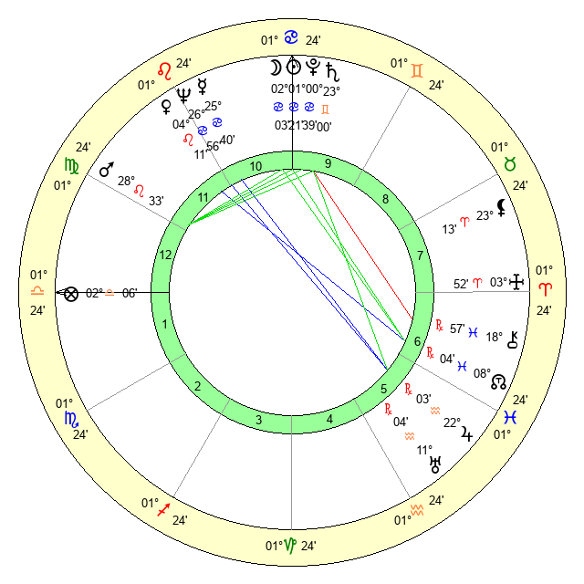 | Neptune | 26 Cancer 57 | 2 Aries 8 | 0 Leo 20 |