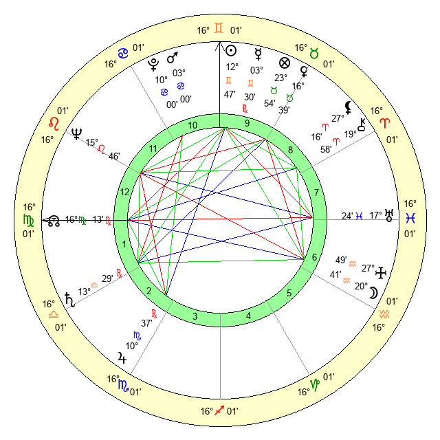 | Sun | 12 Gemini 48 | 14 Gemini 5 | 20 Virgo 36 |