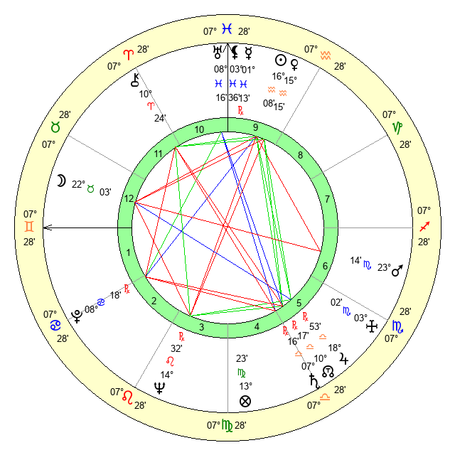 | Saturn | 7 Libra 58 | 17 Pisces 52 | 1 Libra 42 |
