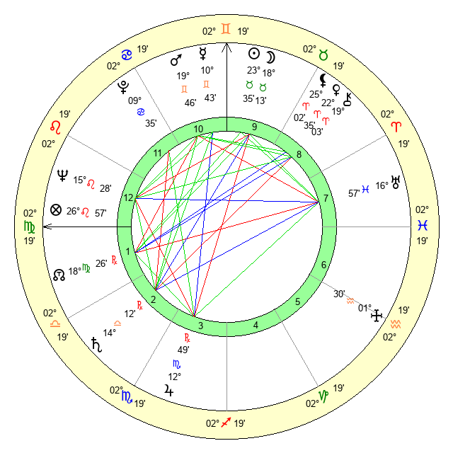 | Jupiter | 12 Scorpio 31 | 24 Gemini 22 | 12 Scorpio 13 |