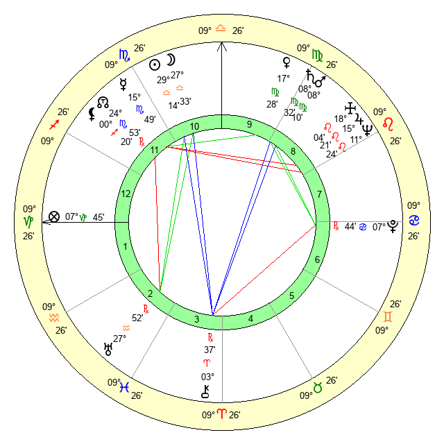 | Moon | 27 Libra 29 | 24 Scorpio 27 | 17 Virgo 3 |