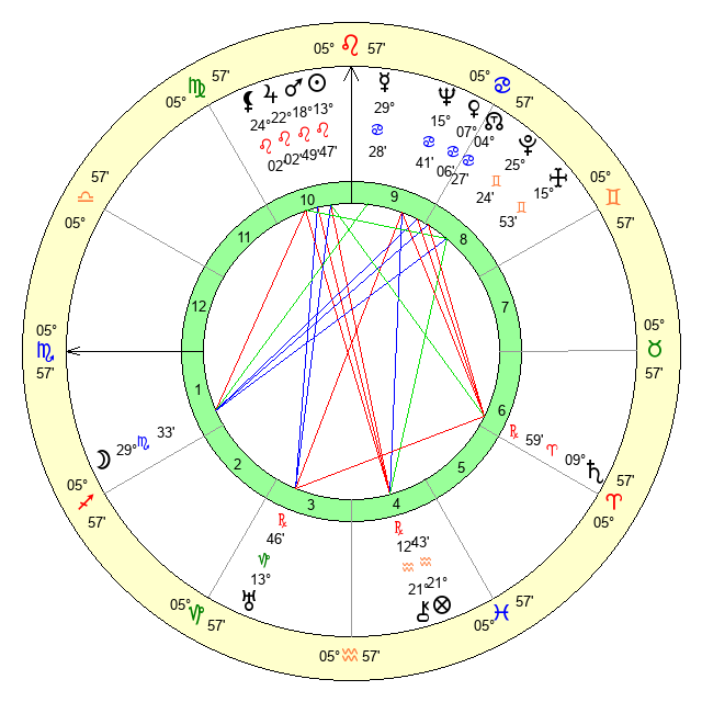 | Mars | 18 Leo 50 | 29 Virgo 50 | 4 Scorpio 0 |