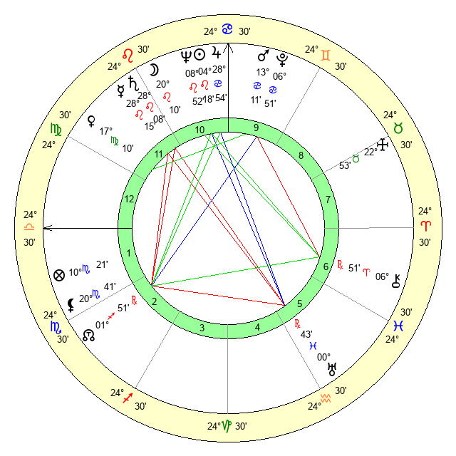 | Moon | 20 Leo 10 | 20 Virgo 20 | 6 Cancer 28 |