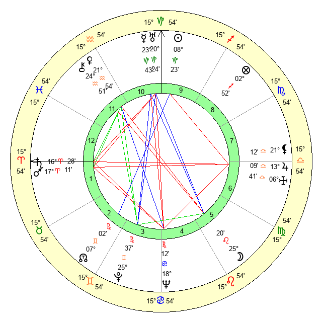 | Jupiter | 12 Libra 57 | 13 Gemini 20 | 6 Libra 27 |