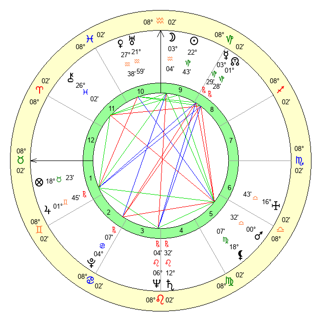 | Uranus | 21 Aquarius 57 | 27 Taurus 40 | 27 Aquarius 16 |