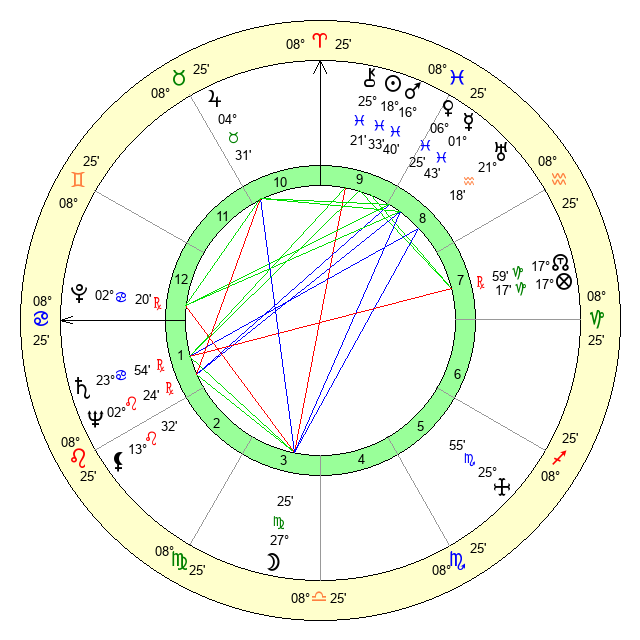 | Sun | 18 Pisces 34 | 19 Pisces 22 | 3 Cancer 31 |