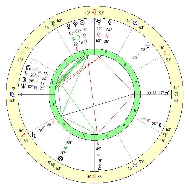 | Moon | 28 Libra 14 | 12 Cancer 33 | 10 Aries 46 |