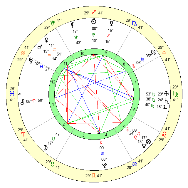 | Saturn | 25 Virgo 20 | 25 Pisces 35 | 20 Virgo 19 |
