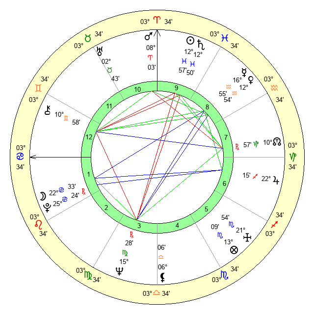 | Sun | 12 Pisces 57 | 13 Pisces 22 | 10 Gemini 1 |