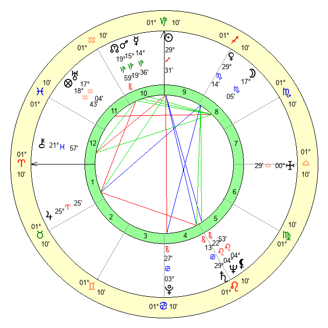 | Moon | 17 Scorpio 3 | 18 Capricorn 21 | 14 Scorpio 44 |