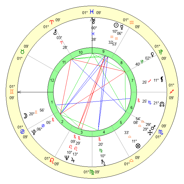 | Moon | 21 Gemini 12 | 10 Pisces 40 | 19 Aries 26 |