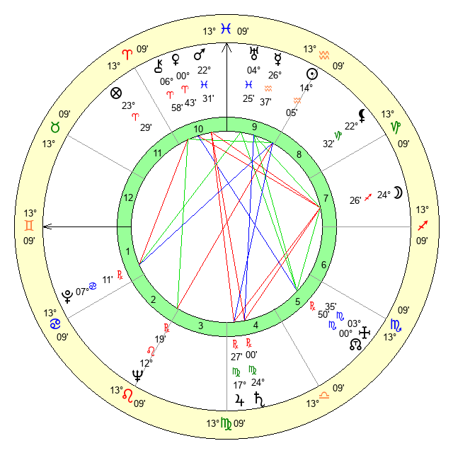 | Mars | 22 Pisces 31 | 19 Cancer 46 | 8 Gemini 37 |