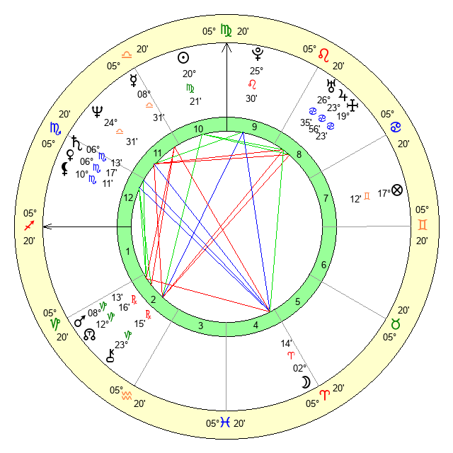 | Moon | 2 Aries 5 | 11 Gemini 23 | 11 Scorpio 14 |