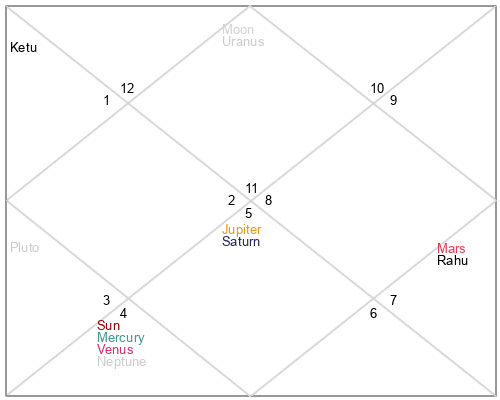 | Rahu | 11 Scorpio 0 | 20 Pisces 10 | 5 Scorpio 27 |