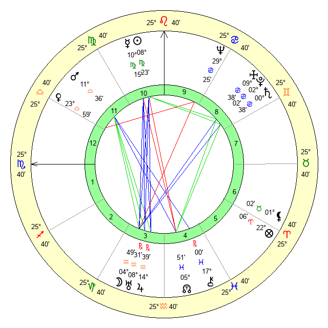 | Venus | 23 Libra 59 | 8 Leo 24 | 27 Scorpio 13 |