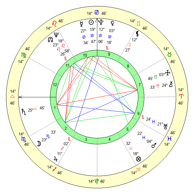 | Sun | 19 Cancer 47 | 20 Cancer 21 | 27 Libra 46 |