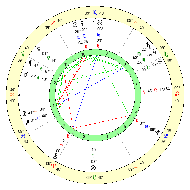 | Saturn | 23 Virgo 32 | 25 Pisces 8 | 22 Virgo 53 |