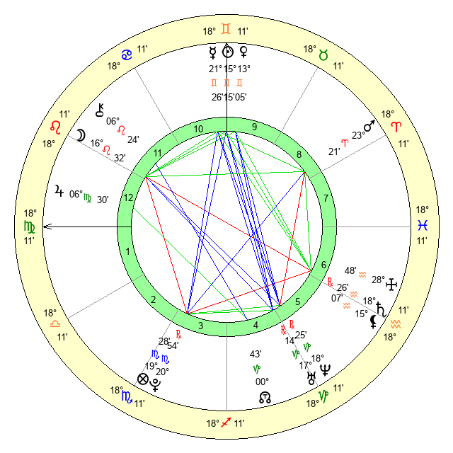 | Jupiter | 6 Virgo 23 | 29 Gemini 4 | 10 Virgo 50 |