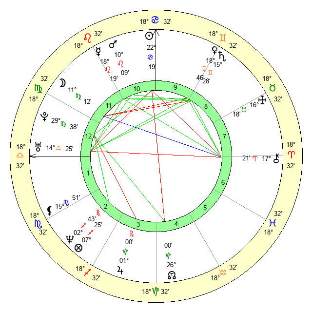 | Moon | 11 Virgo 17 | 9 Pisces 42 | 18 Leo 46 |