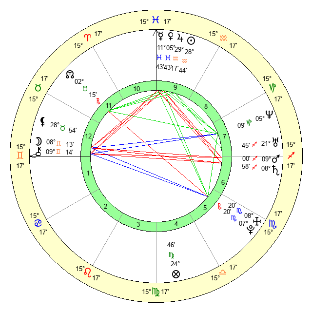 | Jupiter | 29 Aquarius 18 | 11 Gemini 34 | 8 Pisces 29 |