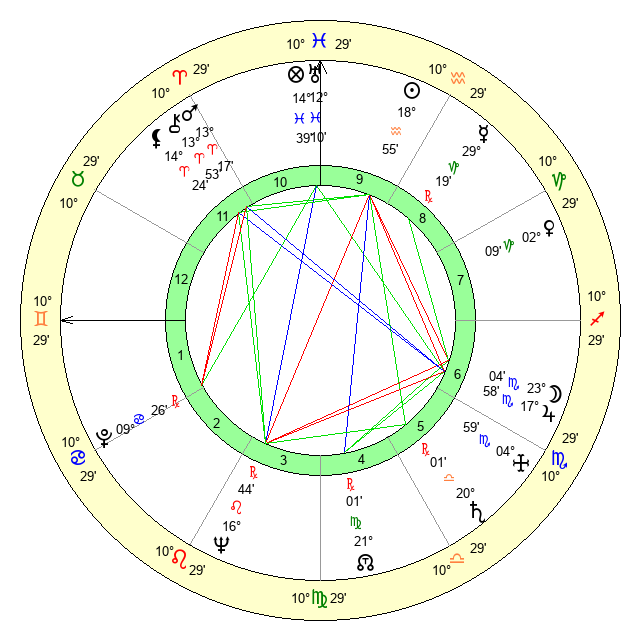 | Saturn | 20 Libra 41 | 18 Pisces 13 | 14 Libra 36 |