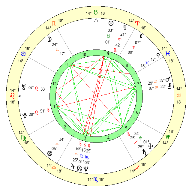 | Mars | 27 Aquarius 31 | 2 Leo 20 | 15 Aries 45 |