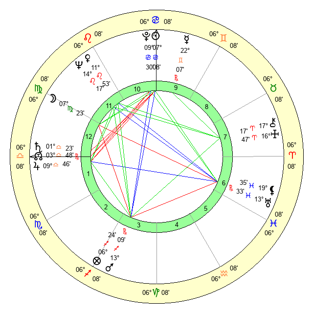 | Moon | 7 Virgo 25 | 2 Virgo 54 | 8 Gemini 22 |