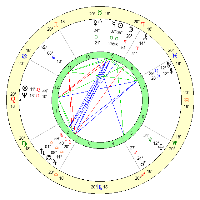 | Venus | 24 Taurus 22 | 27 Pisces 51 | 26 Virgo 42 |