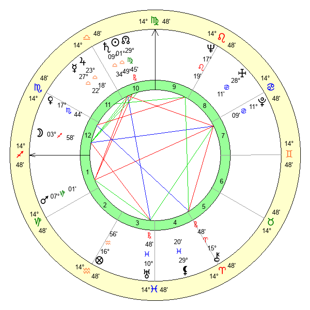 | Venus | 17 Scorpio 44 | 7 Virgo 34 | 2 Sagittarius 44 |