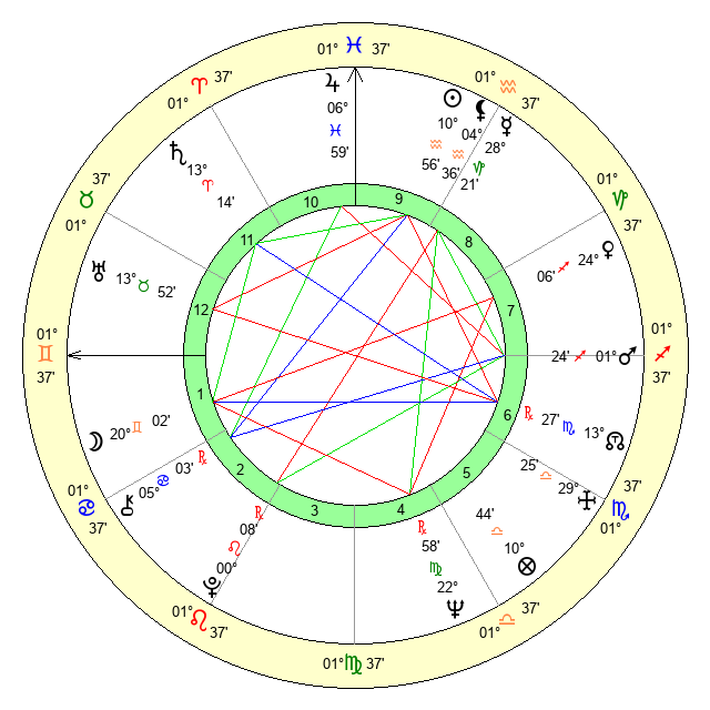 | Jupiter | 6 Pisces 57 | 11 Gemini 17 | 27 Pisces 7 |