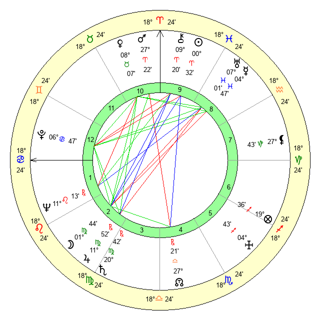 | Sun | 0 Aries 32 | 1 Aries 20 | 11 Cancer 11 |