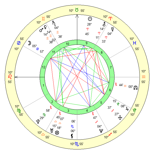 | Mars | 14 Gemini 38 | 0 Leo 13 | 18 Cancer 36 |