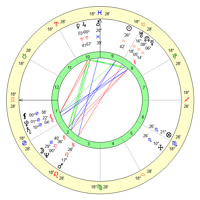 | Sun | 26 Aquarius 42 | 28 Aquarius 16 | 13 Gemini 42 |