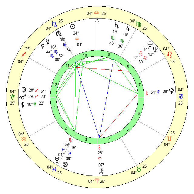 | Venus | 22 Scorpio 0 | 4 Libra 45 | 26 Pisces 44 |