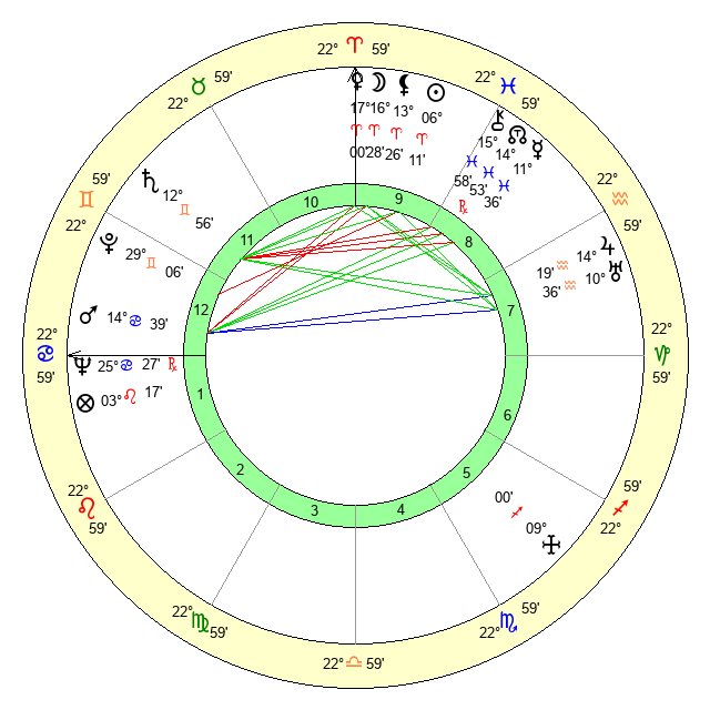| Sun | 6 Aries 11 | 7 Aries 16 | 23 Cancer 17 |