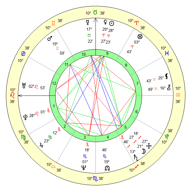 | Pluto | 28 Leo 0 | 3 Aquarius 45 | 28 Leo 25 |