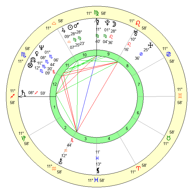 | Moon | 28 Leo 35 | 27 Virgo 27 | 0 Pisces 0 |